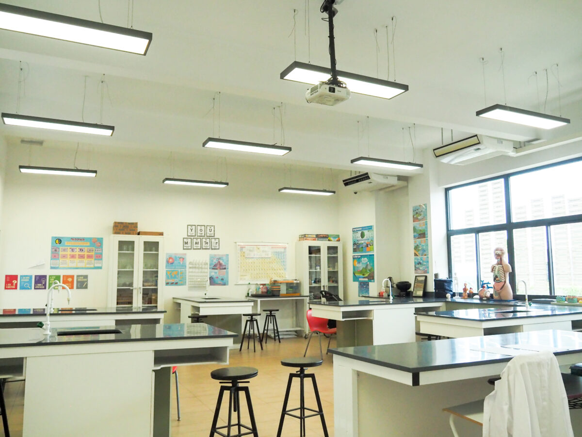 Our campus provides a wide range of facilities and equipment that form a strong foundation for a diverse education. These include science laboratories meeting international academic standards, a STEM Innovation Center that fosters creativity, a theater with a seating capacity of 850, an Olympic-sized outdoor swimming pool, an indoor golf practise hall equipped with AI technology, access to an internationally recognized top 100 golf range, a professional-grade fitness center, multiple sports courts, seperate libraries for primary and secondary students, and a dedicated culinary and baking classroom. These facilities not only create advanced learning environments for core academic subjects but also offer diverse opportunities for students to explore their interests and talents.